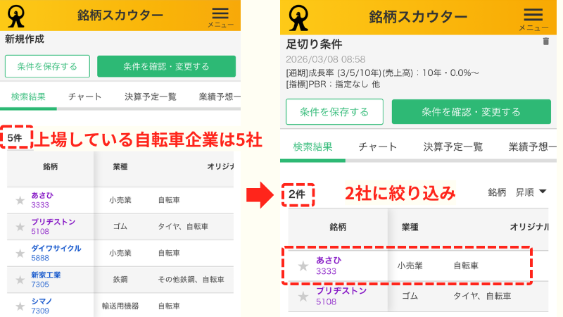 ▼足切り条件でのあさひの評価