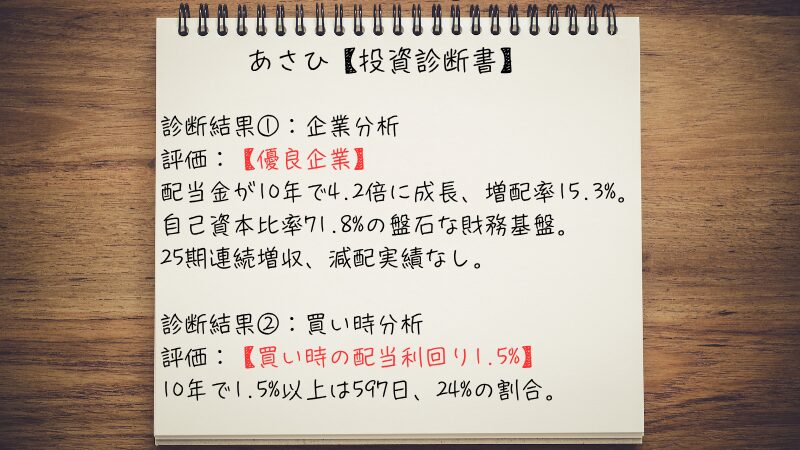 25期連続増収という圧倒的な成長実績、71.8%の盤石な財務基盤、10年で4.2倍に成長した配当金。数値からも配当株投資の対象として十分な実力を備えています。