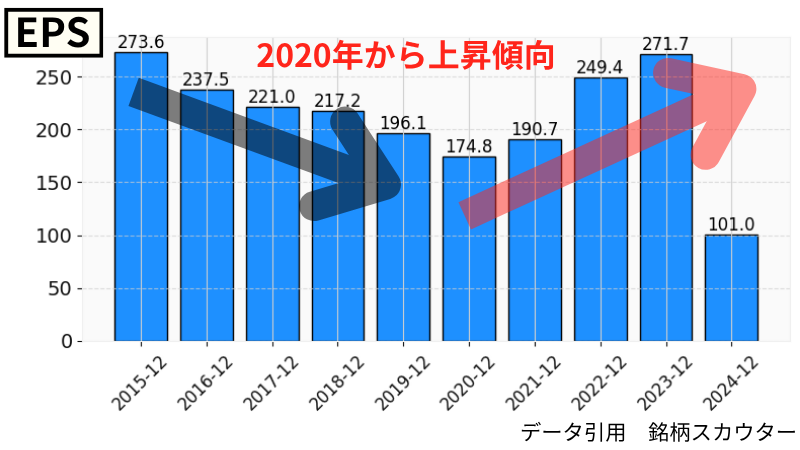 | EPS (稼ぐ力) | 右肩上がり | 横ばい | 右肩下がり |