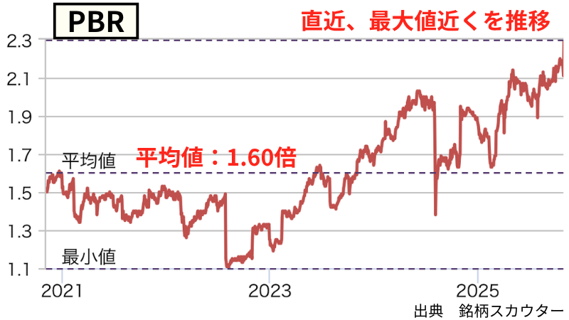 | PBR | 2.31倍 | 22年から上昇傾向 |