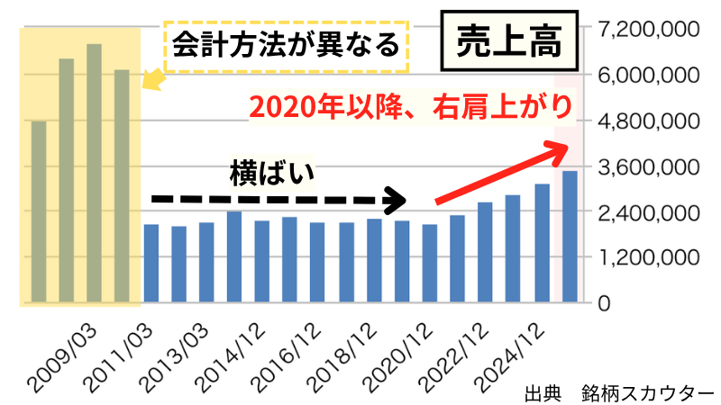 | 売上高 | 短期で上昇 | 20年から上昇、最高売上更新 |