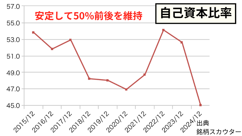 | 自己資本比率 | 45% | 安定した財務基盤 |