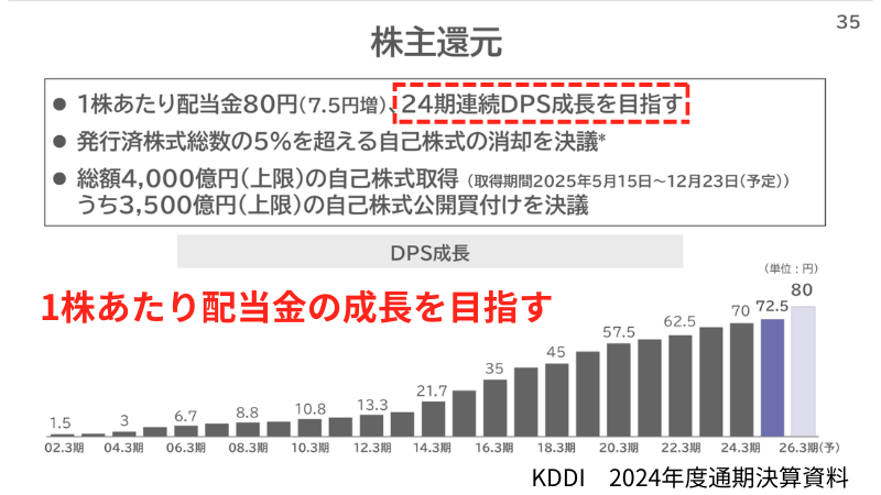 - DPS成長:1株配当金の成長から、連続増配、非減配を目指している。