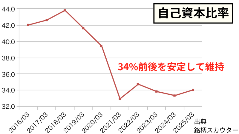 | 自己資本比率 | 34.0% | 45% | 3.1% |