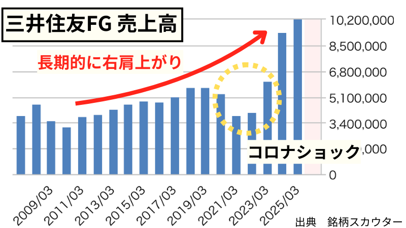 - 三井住友FGに行った優良企業を見つける企業分析は、【銘柄スカウター】で効率的になります。銘柄スカウターの使い方10選はこちら。