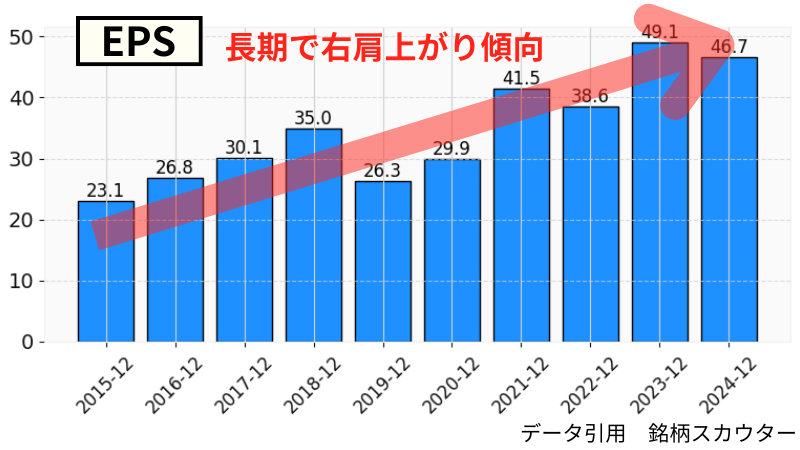 | EPS (稼ぐ力) | 右肩上がり | 横ばい | 右肩下がり |