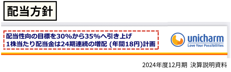 配当性向の引き上げ、24期連続の増配が方針として計画されています。連続増配に対する強い意志を感じます。
