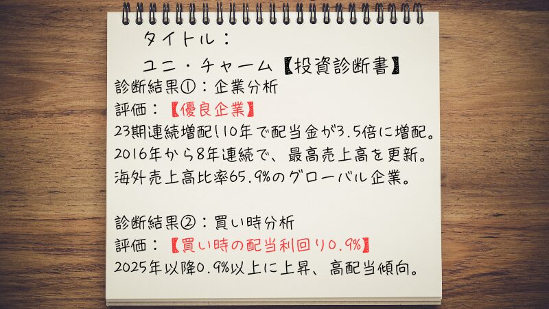 3社を比較した結果、「ユニ・チャーム」が最も魅力的です。