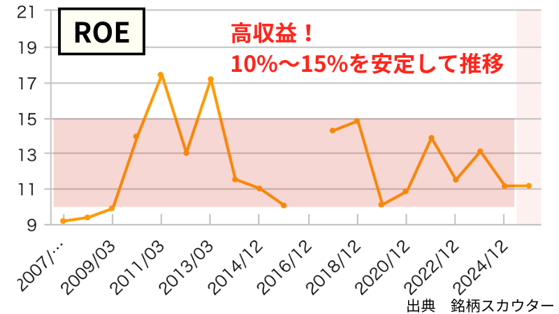 | ROE (収益性) | 12%以上 | 10%以上 | 8%以下 |