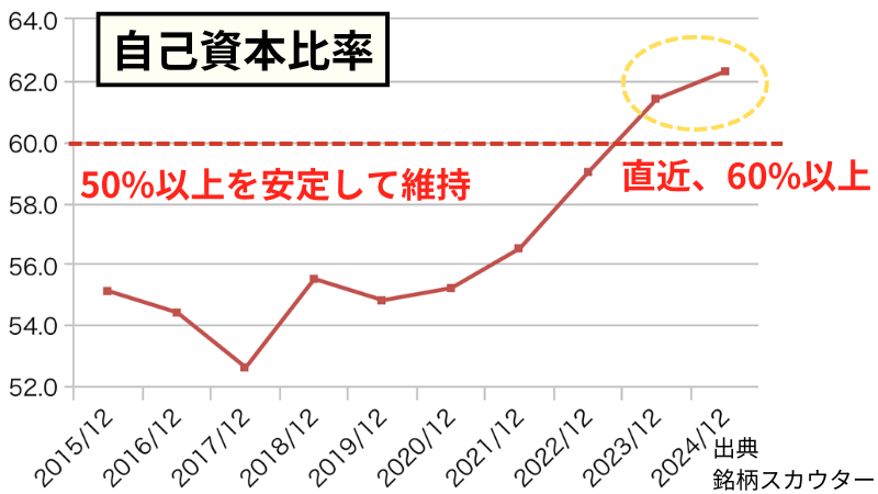 - 倒産リスクが低い:自己資本比率62.3%の盤石な財務優良企業。